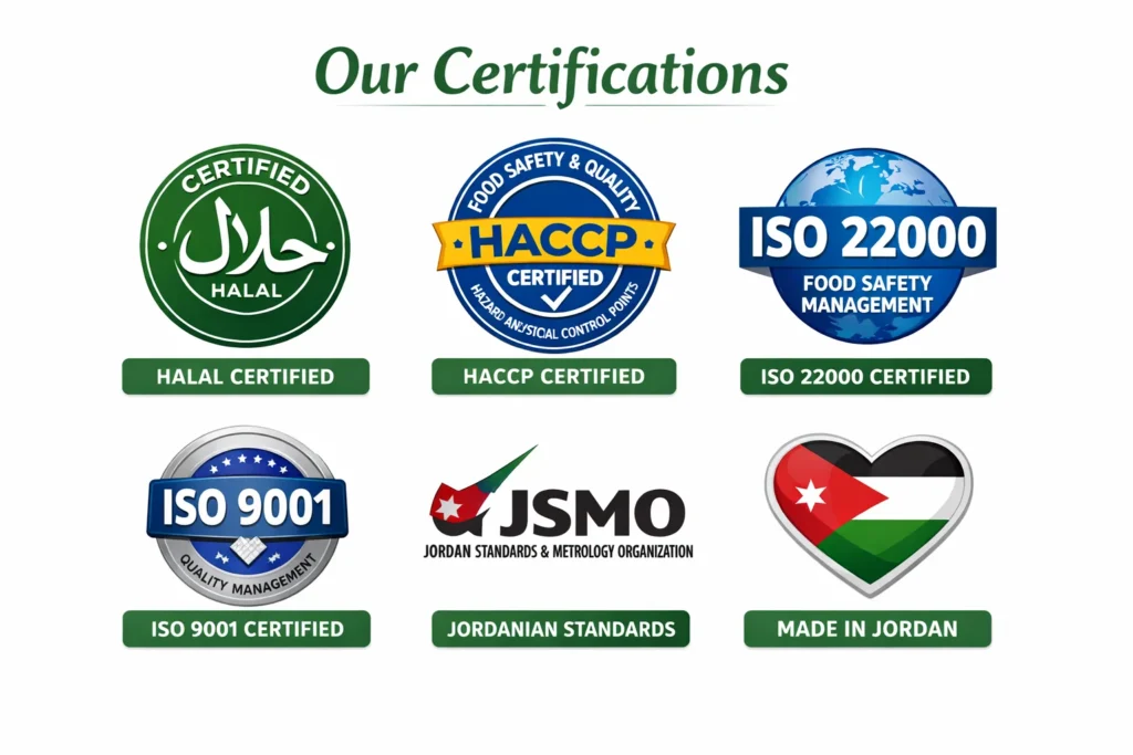 - Certified by the Jordan Standards and Metrology Organization (JSMO) and accredited international bodies.